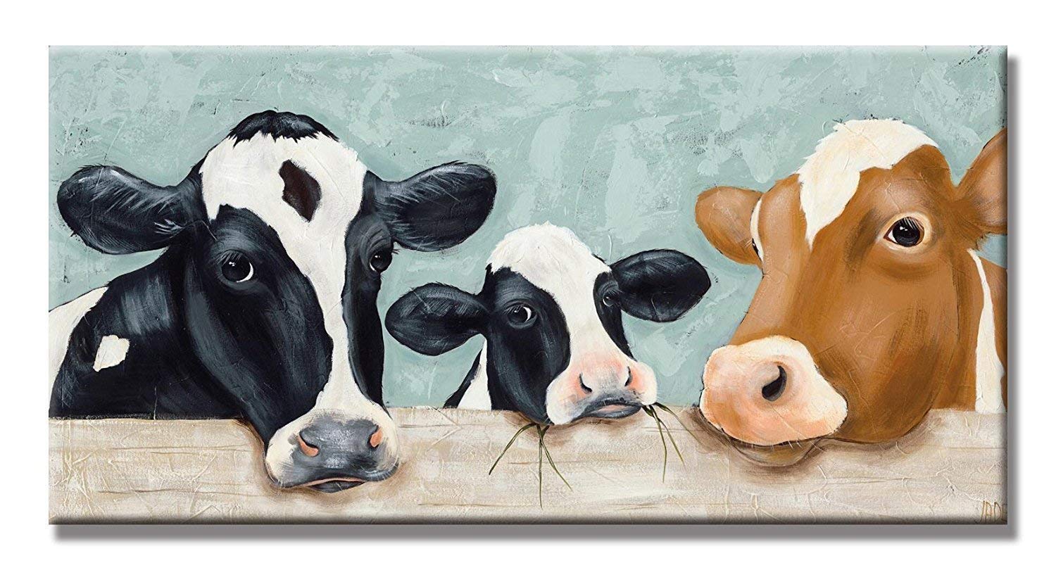 3 Dairy Cattle Painting Canvas Family Cows Hand Painted Oil Painting Artwork Wall Decor for Living Room Bedroom,Ready to Hang 12X24 Inch