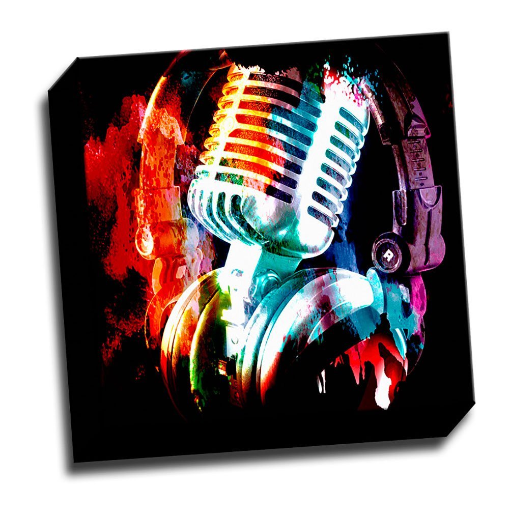 Colorful Microphone 12"x12" Wall Decoration Music Art Image Printed on Canvas Stretched and Framed Ready to Hang