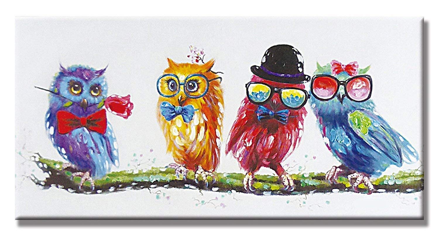 PICTURE IT ON CANVAS Colorful Owl Oil Wall Art Painting Decor Hand Painted Home Decor Artwork for Living Room Bedroom,Ready to Hang 8X16 Inch