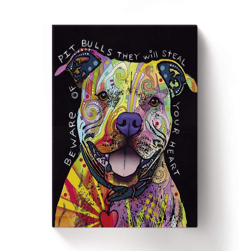 Pitbull Love Colorful Animals Print Canvas Wall Art Decor Oil Painting - Home Office Decorative Stretched Gallery Canvas Wrap Print Ready to Hang ,12" x 16"