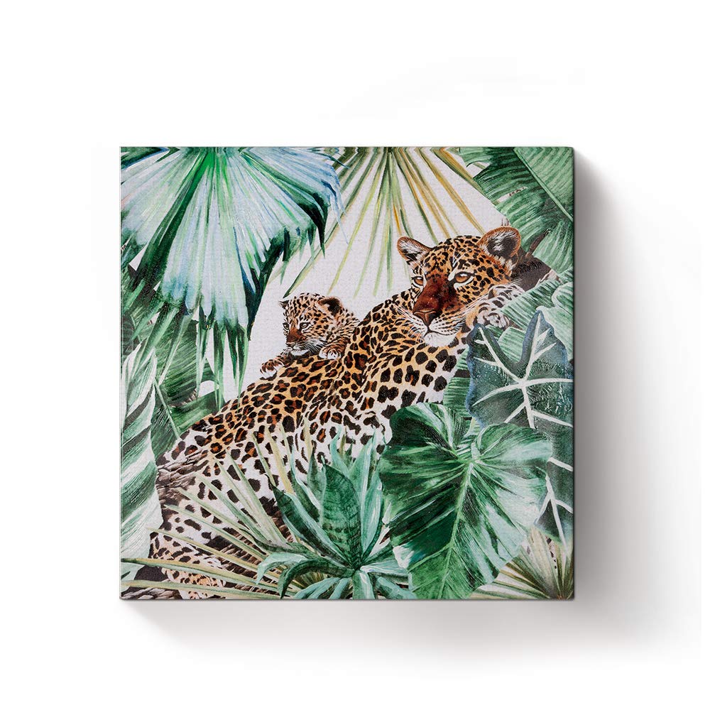 Jungle Cheetah Family Wall Art Canvas Hand Painted Oil Painting for Home Office Decoration - Framed - 12x12in