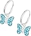 Hypoallergenic Sterling Silver Aqua Crystal Butterfly Hoop Earrings for Kids (Nickel Free)