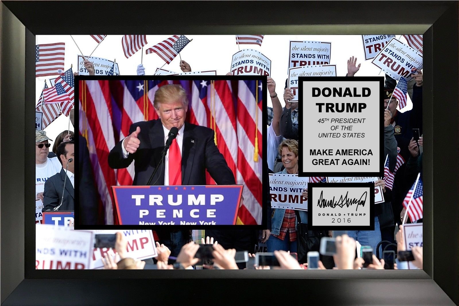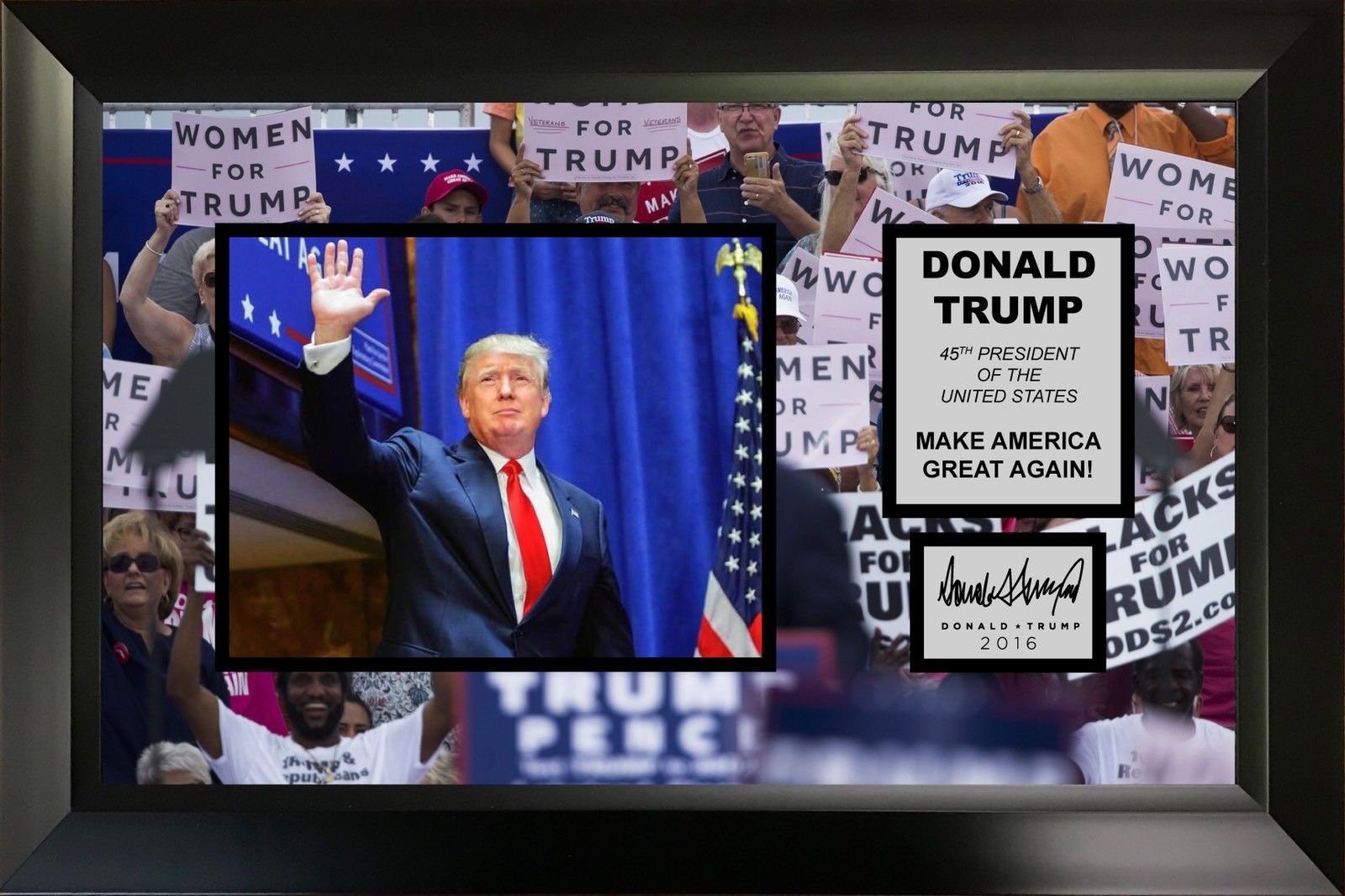 Framed Donald Trump 8x10 Photo Professionally Matted Laser Engraved Autograph Signature Make America Great Again #2