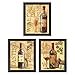 Poster Discount Tuscan Red, White and Rose Bottles and Glasses of Wine; Kitchen Décor; Three 8x10in Brown Framed Prints