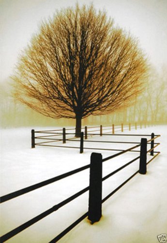 Solitude by David Winston Tree Snow Winter Fence Art Print Poster, Overall Size: 24x36, Image Size: 18x27