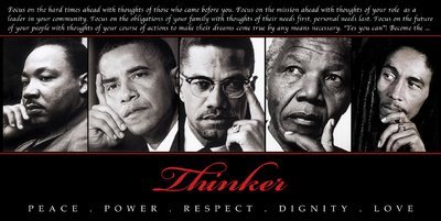 Thinker (Quintet) Peace, Power, Respect, Dignity, Love Poster Print (36 x 18) King Obama Malcom X Mandela Marley