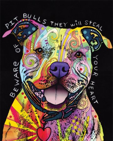 Beware of Pit Bulls Art Poster Print by Dean Russo, 8x10