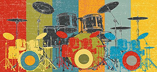 Laminated M.J. Lew Heart Beat Drums Music Rock and Roll Art Poster Print 12x24