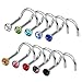 Rbenxia 20G 316L Nose Studs Rings 2.2MM Rhinestone Stainless Steel Nose Body Piercing Rings 10 Pcs Random Color for Unisex