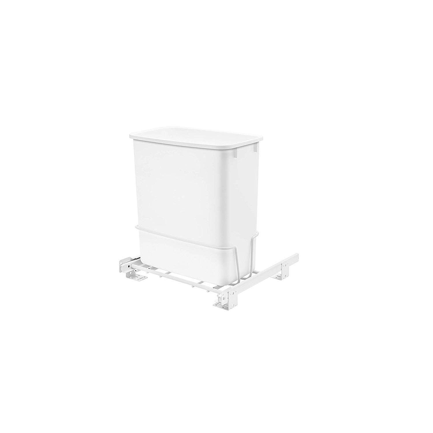 Rev-A-Shelf RV-814PB 20 Quart Pull-Out Waste Container Undermount Cabinet Garbage Bin Trash Recycling Can for Kitchen, Laundry Room, or Vanity, White