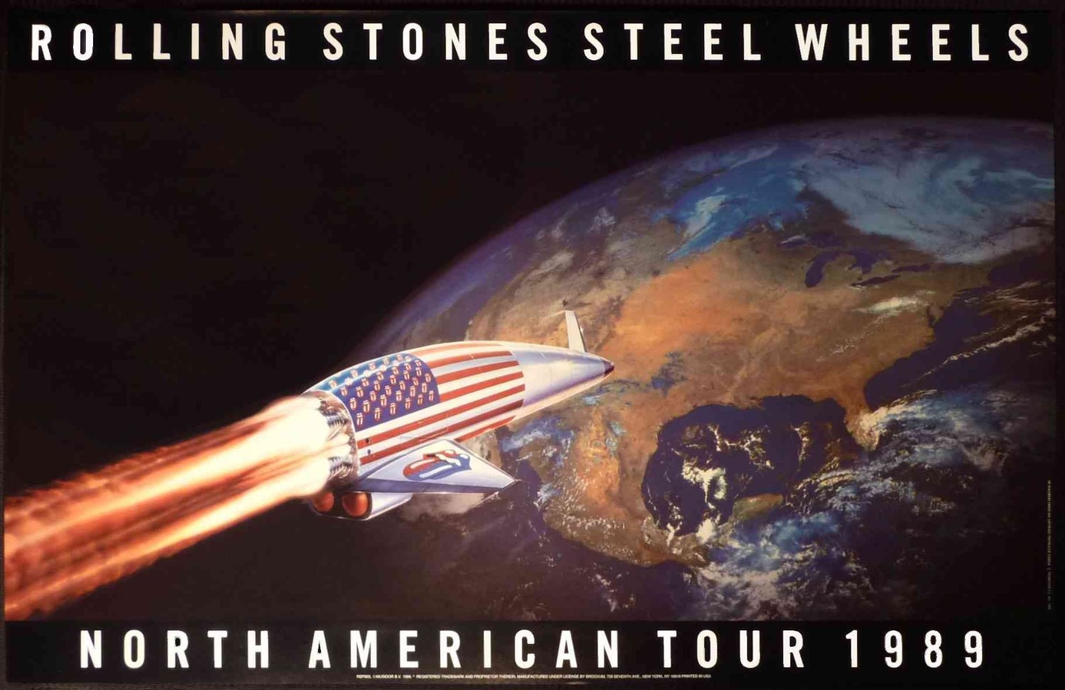 Rolling Stones Original 1989 North American Tour Mint Sealed Poster - Steel Wheels Tongue Replaces Stars on The American Flag (Large Size 22" X 34") Dated 1989