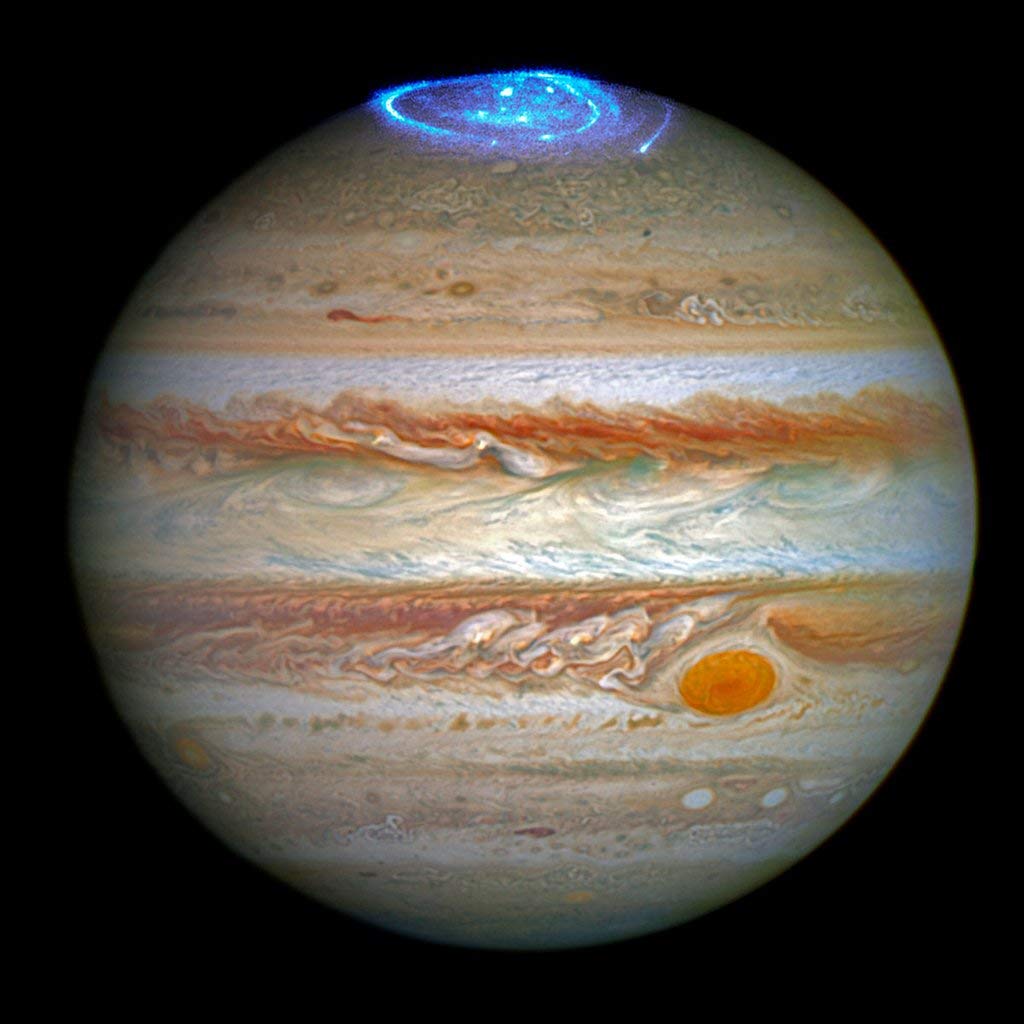 NASA, Jupiter with Auroras, Art Print Poster, Paper Size 14" x 11" Image Size 10" x 10"(2222)