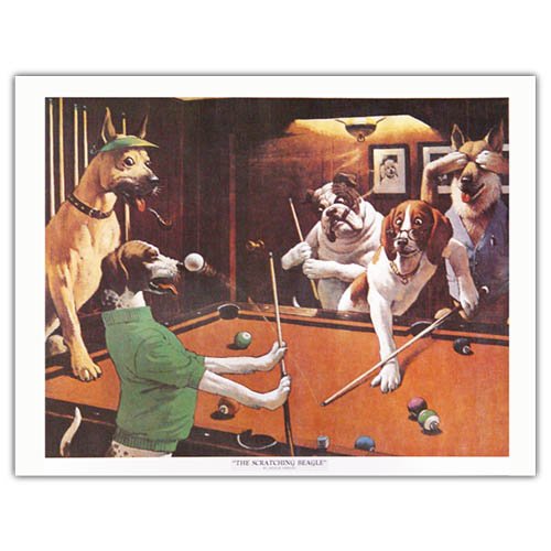 The Hustler by Arthur Sarnoff Dogs Playing Pool Art Print Poster (Overall Size: 20x16) (Image Size: 18x13.75)