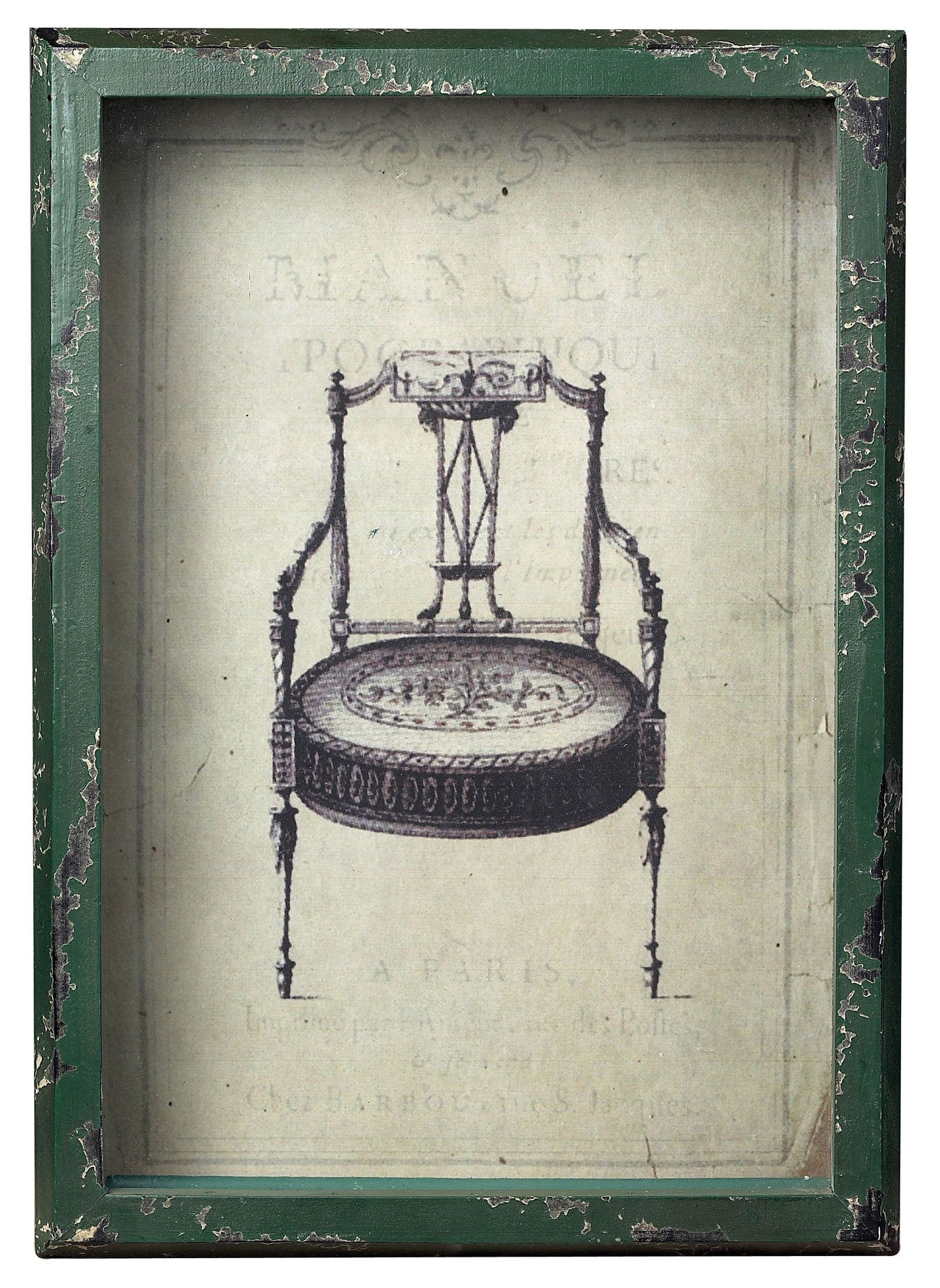 Sterling 128-1027 Traditional Parisian Picture Frame with French Antique Chair Print, 9 by 13-Inch, Distressed Verde