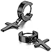 JewelryWe 2pcs Mens Stainless Steel Cross Huggie Hinged Hoop Earrings, Black (with Gift Bag)