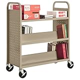 Sandusky Lee SV336-07 Double Sided Sloped Shelf Welded Book Truck, 19" Length, 39" Width, 46" Height, 6 Shelves, Putty