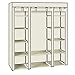 Homdox 66inch Portable Wardrobe Metal+Fabric Closet Organizer Storage with Cover and Side Pockets and Clothes Rods Durable Sturdy Tire shelves Black