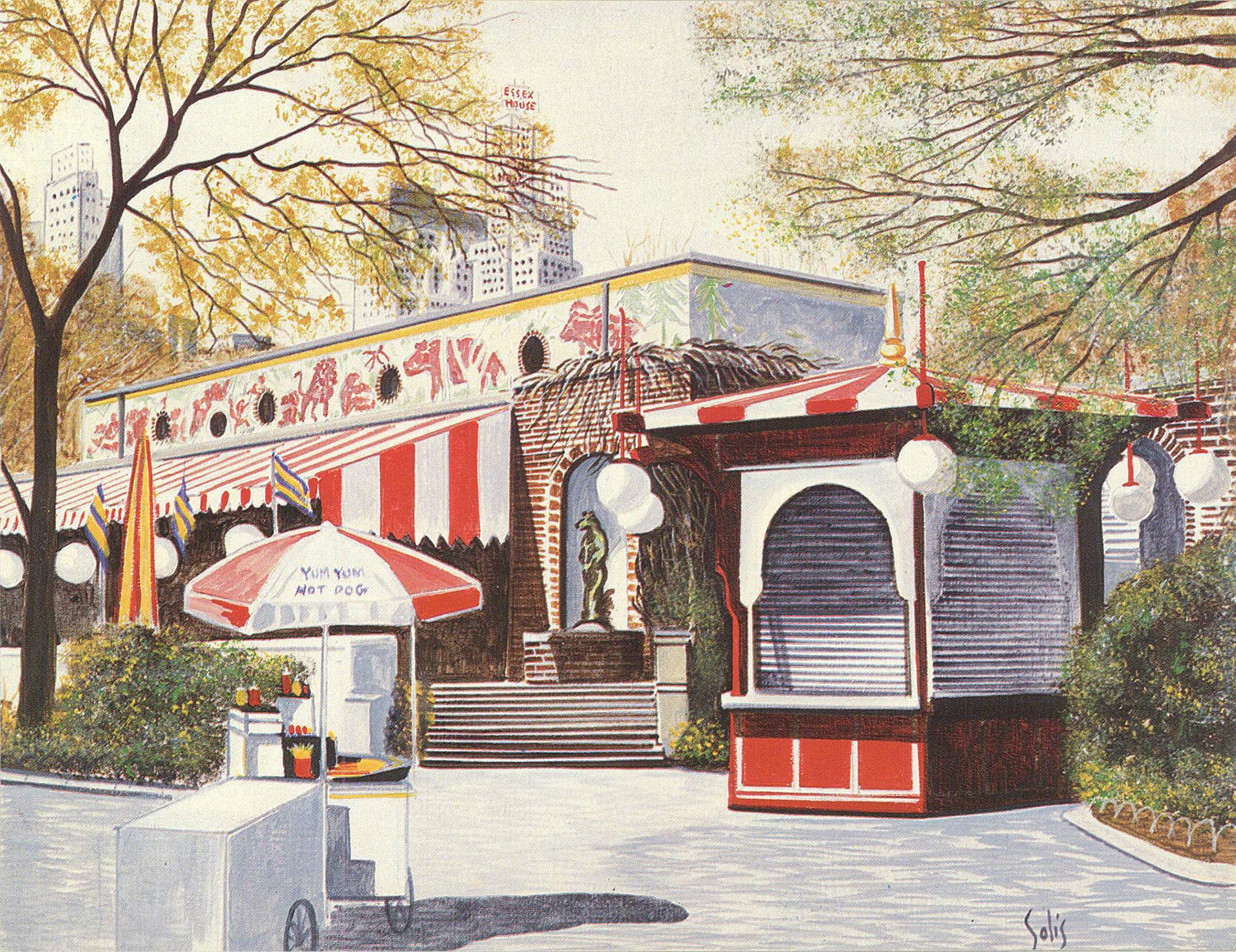 Solis Children's Zoo Cityscape 5.5" x 7" Offset Lithograph 1981 Contemporary