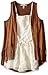 Speechless Big Girls Crochet Romper 2 Piece with Knit Suede Vest, Brown/Ivory, Small