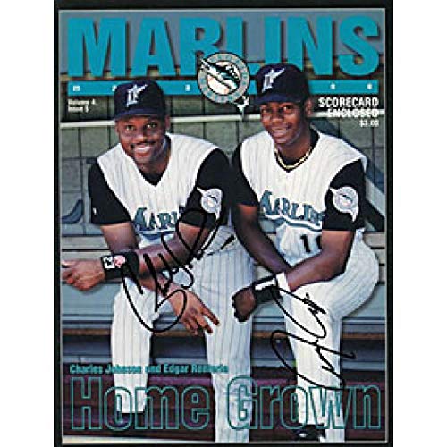 Signed Edgar Renteria Photograph - Charles Johnson & Marlins Magazine - Autographed MLB Photos