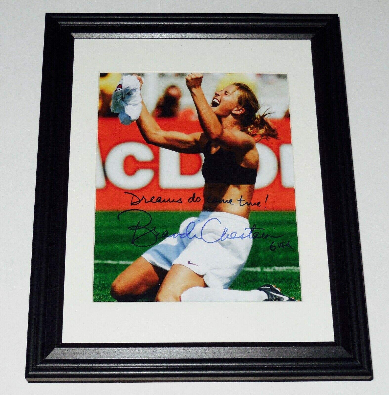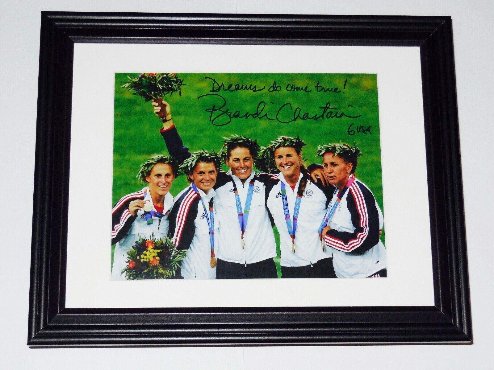 Brandi Chastain Signed Photo - 8x10 Color framed & Matted) - Usa Gold! - Autographed Soccer Photos