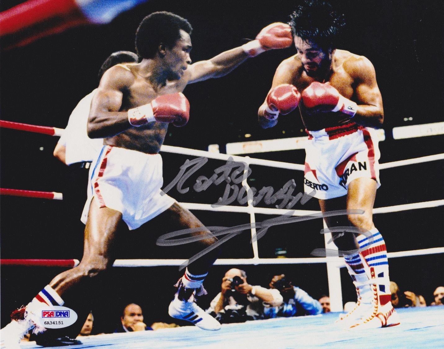 Roberto Duran Signed White Robe"HANDS OF STONE" on back - Autographed Boxing Robes and Trunks