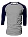 TL Men Baseball Crew Neck Cotton Long or 3/4 Sleeve Essential Raglan Tee Shirts