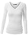 TWINTH Shirring Shirts Deep V-Neck Top Long Sleeve Drape Shirts White 2XL