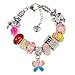 Timeline Treasures European Charm Bracelet with Charms for Girls, Stainless Steel Snake Chain, Back to School, Pink 6.5 Inch (16.5cm)