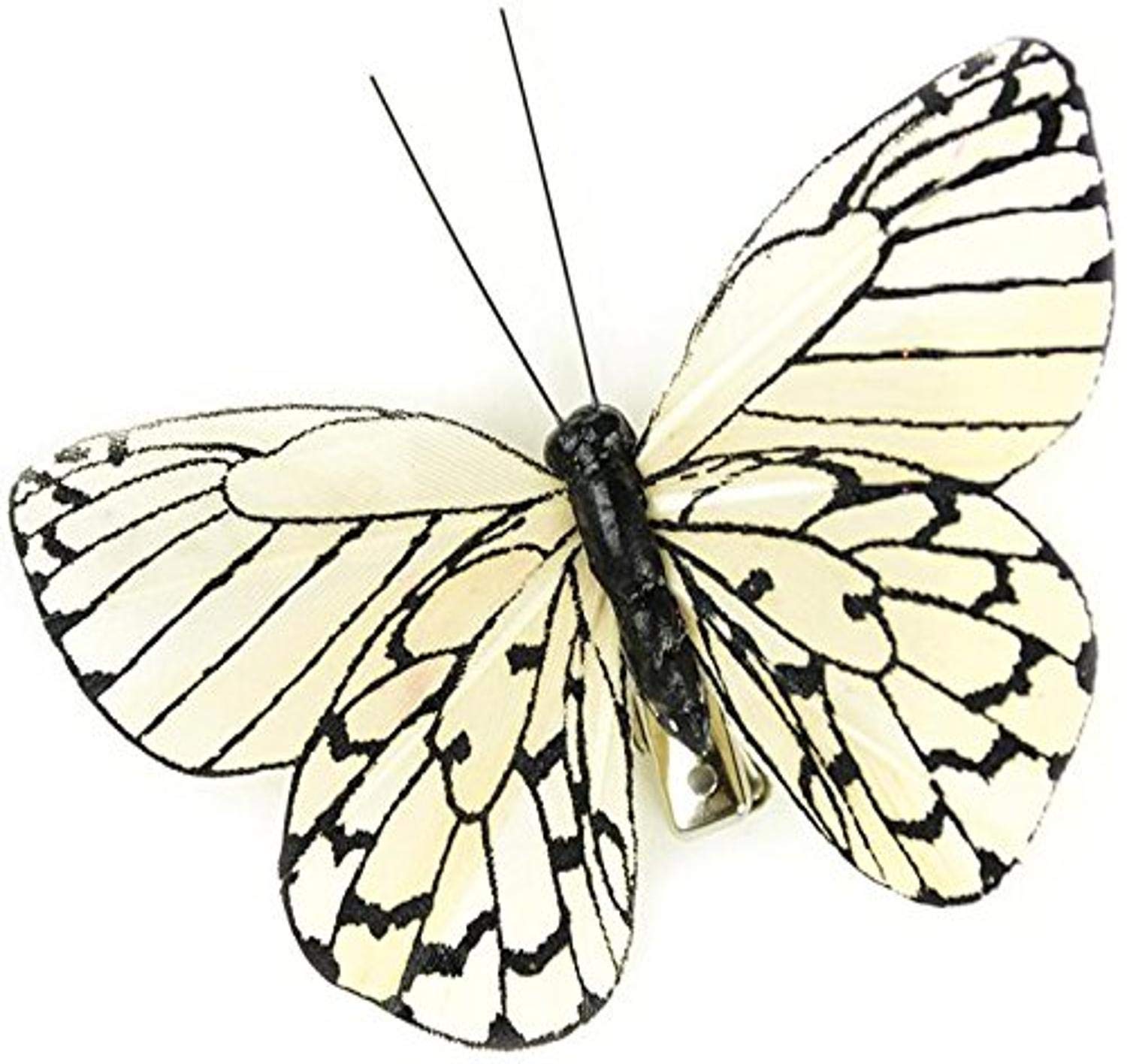 Touch of Nature 1-Piece Feather Butterfly Zebra Print on Clip for Arts and Crafts, 3-Inch, Black/White
