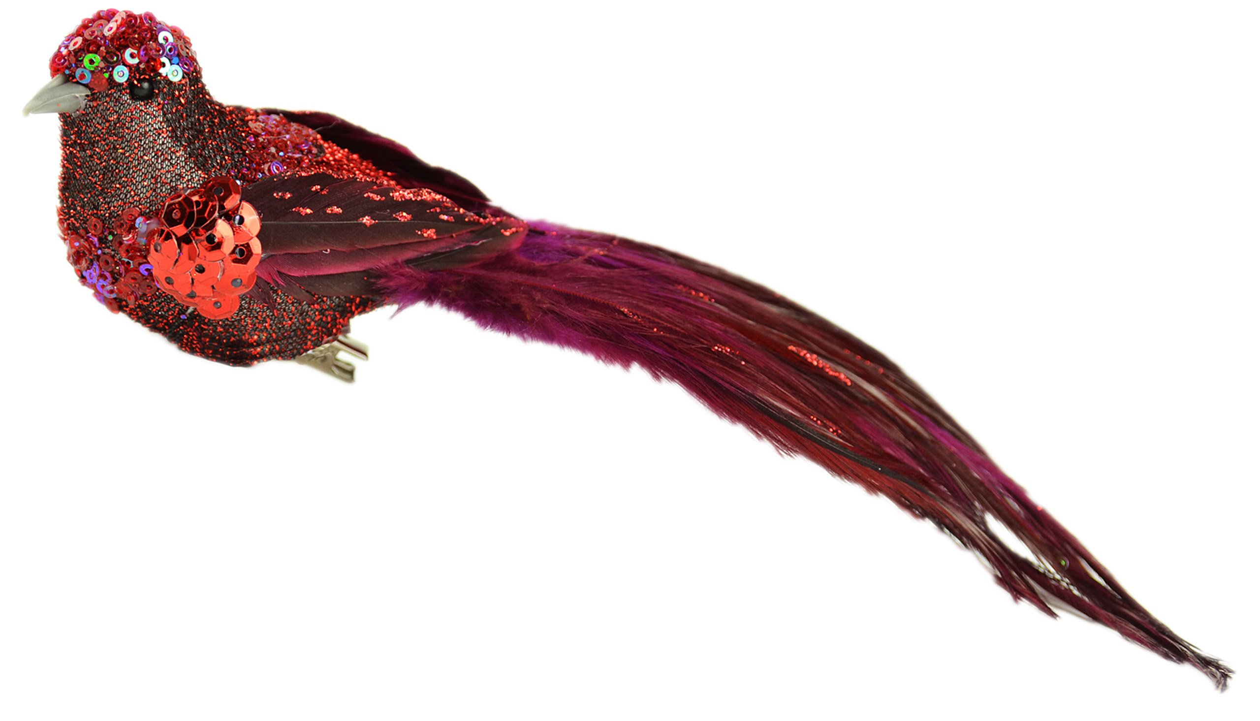 Touch of Nature 1-Piece Fancy Glitter Bird on Clip for Arts and Crafts, 6-Inch, Red/Burgundy