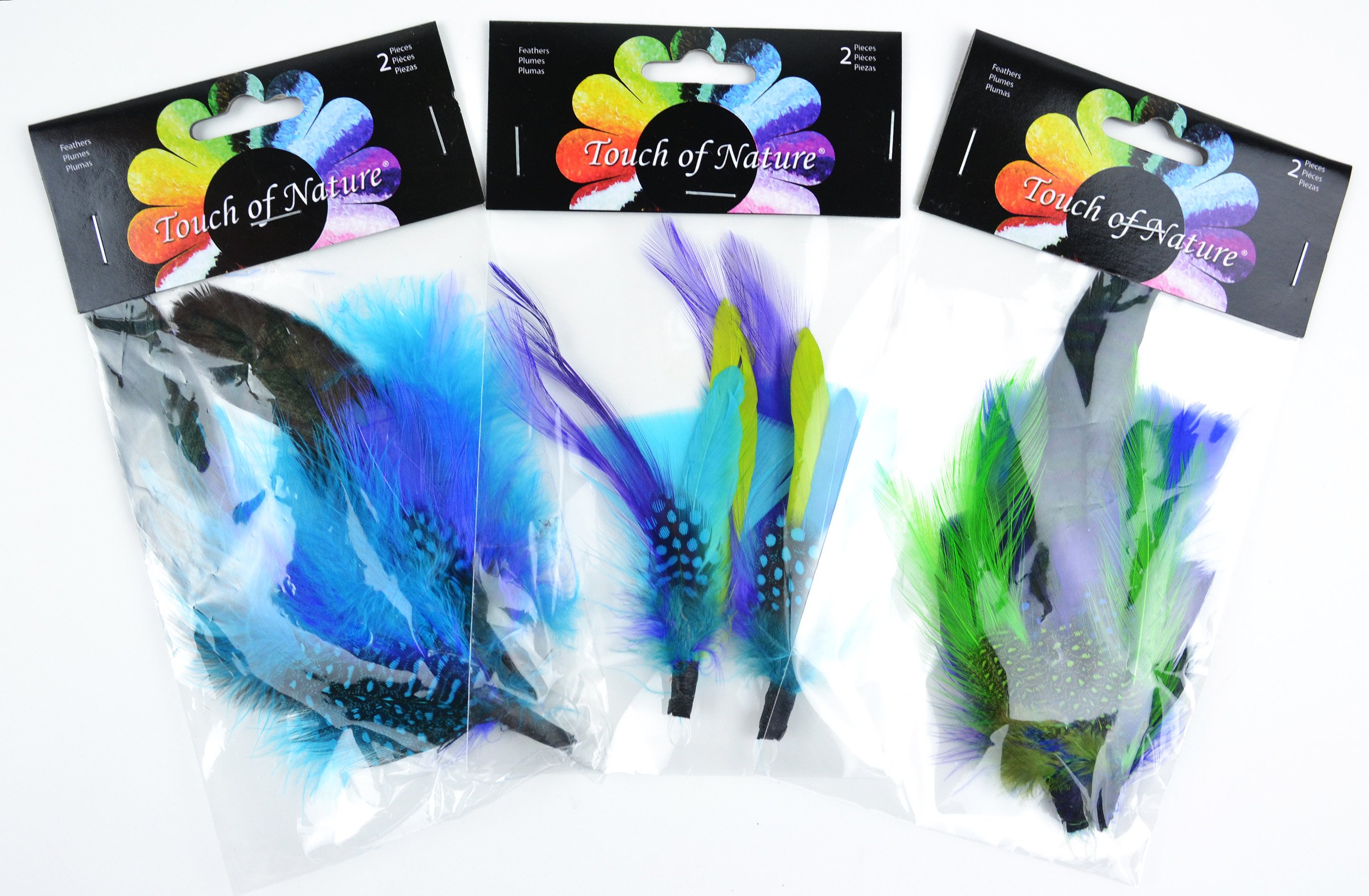 Touch of Nature 2-Piece Feather Pick with Nylon Loop Assortment for Arts and Crafts, 6 to 7-Inch, Blue/Green/Purple