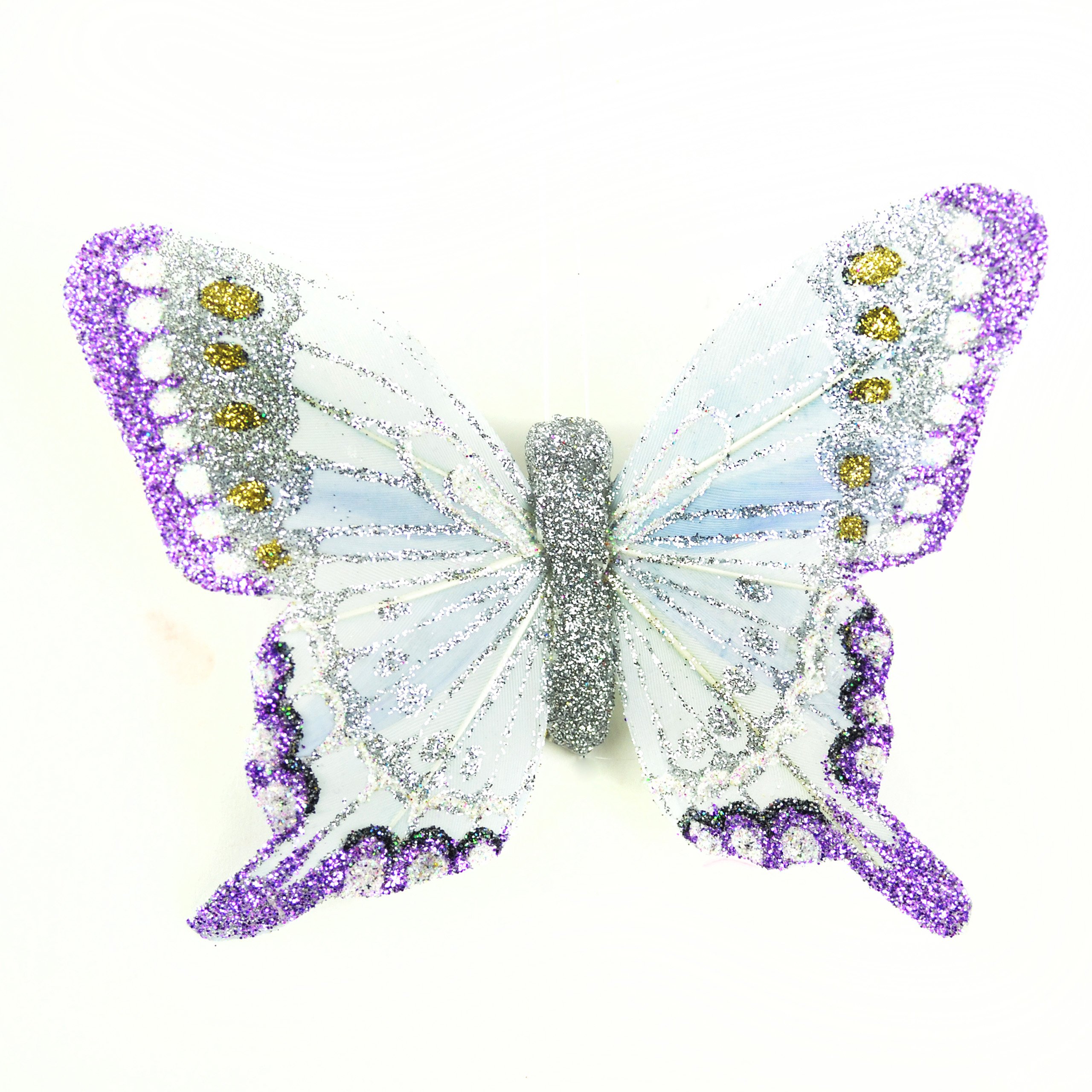 Touch of Nature 1-Piece Fancy Glitter Feather Butterfly on Clip for Arts and Crafts, 5-Inch, Silver/Purple