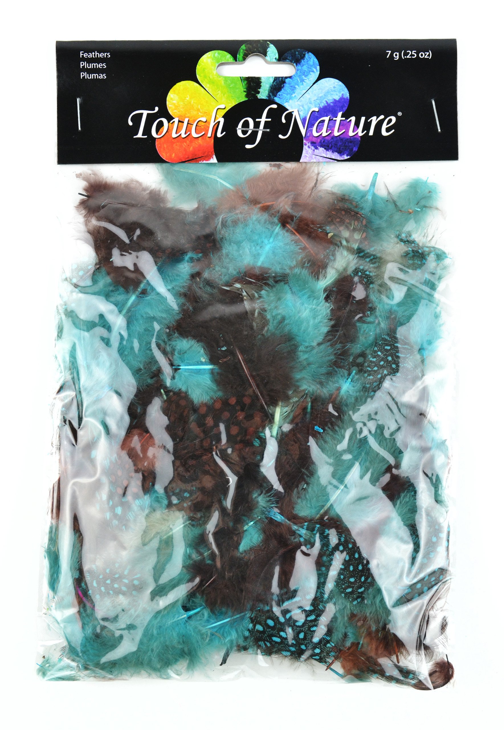 Touch of Nature Dyed Guinea Feathers for Arts and Crafts, 7gm, Earth/Sky Mix/Chocolate/Aqua/Robin Egg/Sienna
