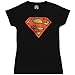 Superman Classic Distressed Logo Ladies T-shirt - Black (Medium)