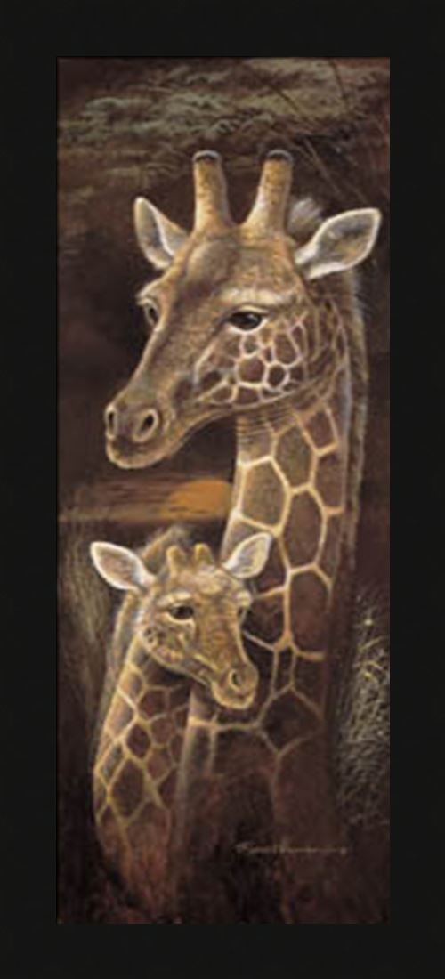 12x36 Giraffe, Love & Devotion, Artist Ruane Manning - Safari Art Print Poster Black Wrapped Wood Framed #10448Blk1.25