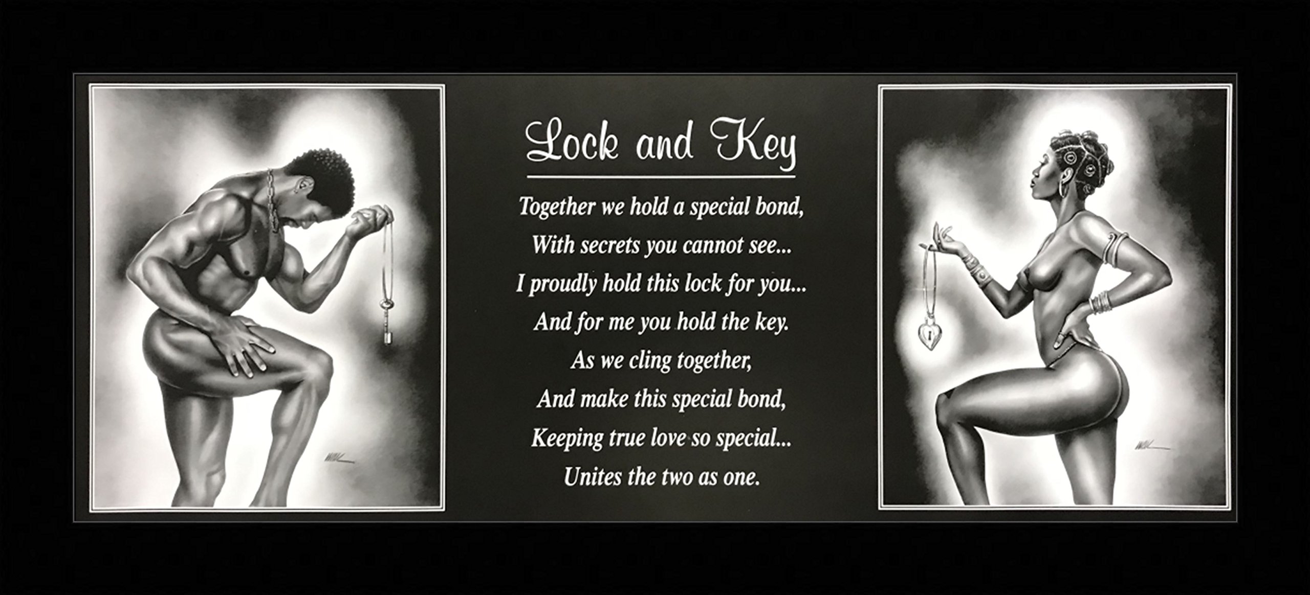 Black 1.5 inch Framed with Lock & Key, (African American Art/Romantic) 8x20 Inch WAK Literary Art Print Poster