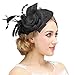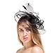 Valdler Womens Feather Mesh Net Sinamay Fascinator Hat with Hair Clip Tea Party Derby Black