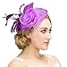 Valdler Womens Feather Mesh Net Sinamay Fascinator Hat with Hair Clip Tea Party Derby Purple