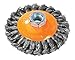 Walter 13H404 Saucer-Cup Knot-Twisted Brush – 4 in. Carbon Steel Wire Brush with 5/8-11 in. Arbor Hole. Surface Finishing Supplies, Orange