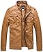 WantDo Mens Vintage Stand Collar Pu Leather Jacket,Yellow,US Large