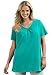 Woman Within Plus Size Top in Tunic Length, The Perfect Cotton V-Neck with Shirring Aquamarine,2X