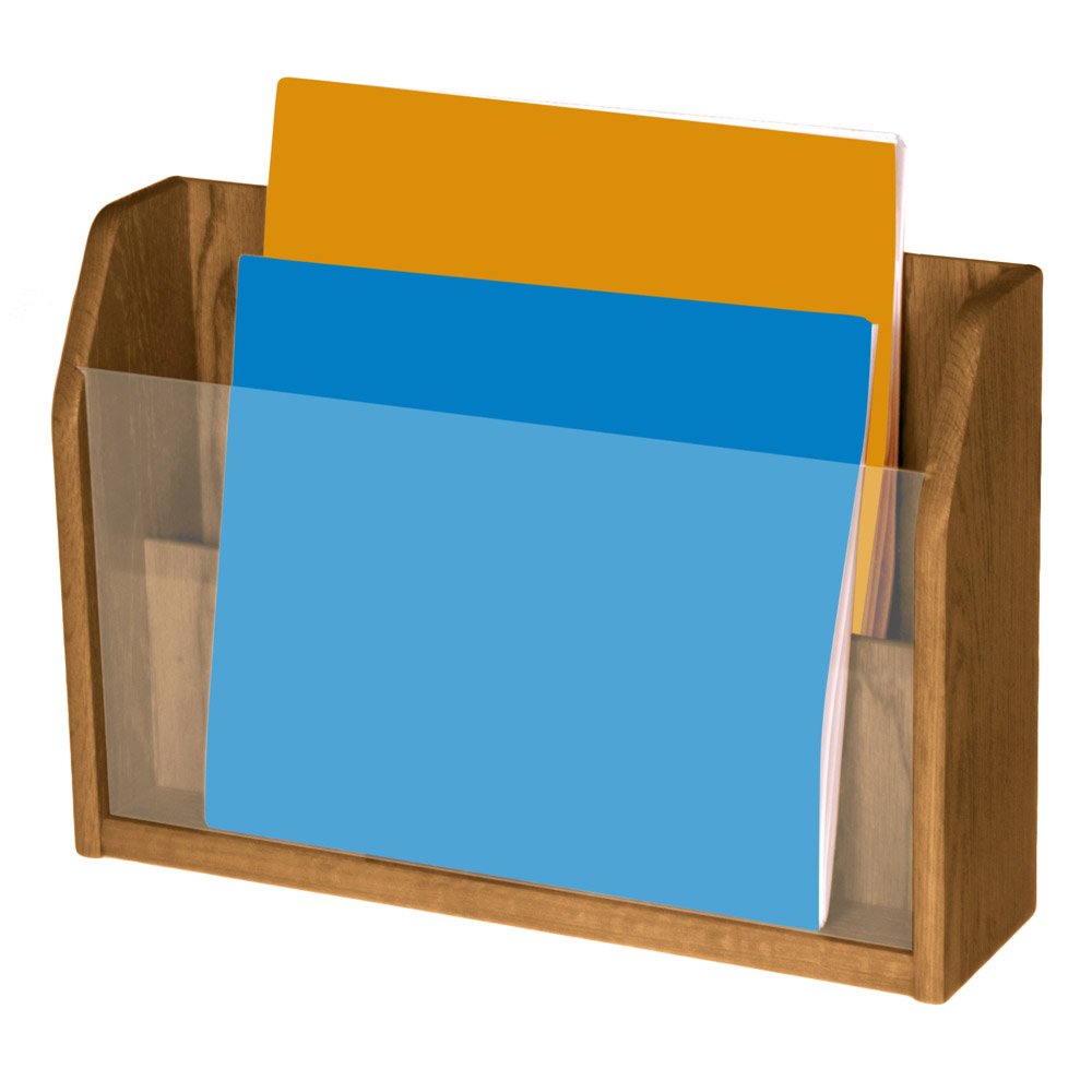 Wooden Mallet Countertop Literature Display with Business Card Pocket, Mahogany