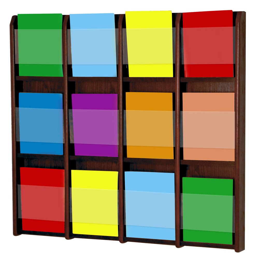 Wooden Mallet Slope 12-Pocket Literature Display, Mahogany