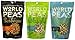 World Peas All Natural Green Pea Snack 3 Flavor Variety Bundle: (1) World Peas Nagano Hot Wasabi Flavored Green Pea Snack, (1) World Peas Santa Barbara Tangy Ranch Flavored Green Pea Snack, and (1) World Peas Smoky Texas Mesquite BBQ Flavored Green Pea Sn
