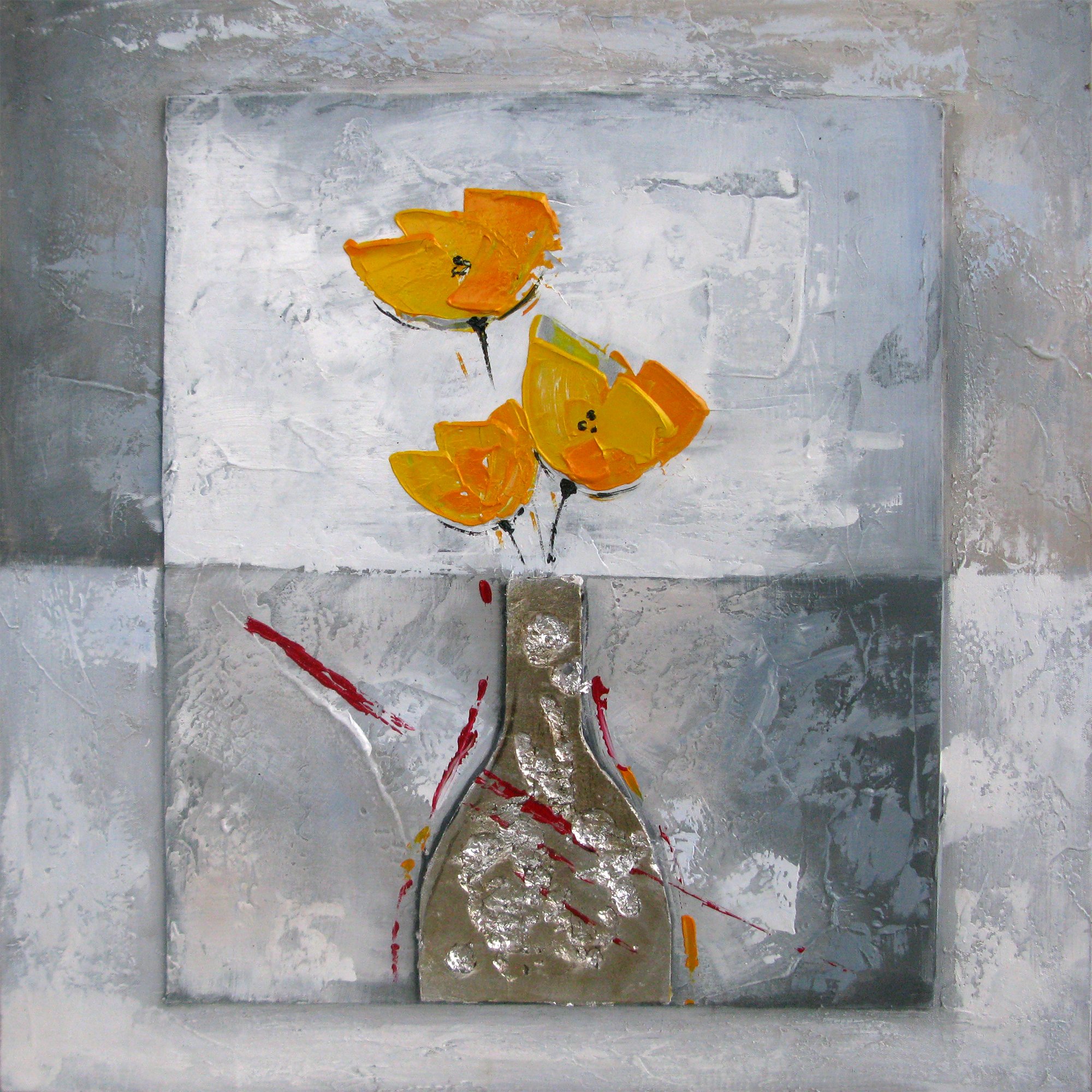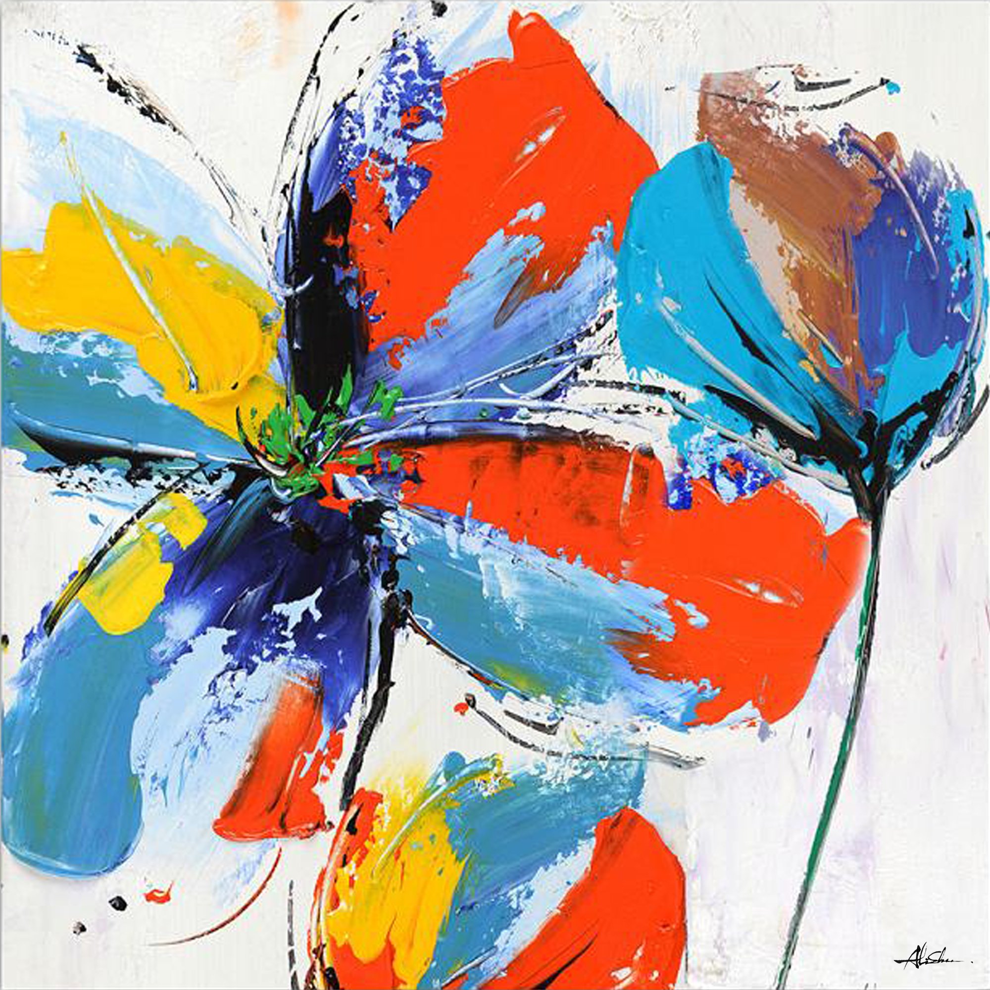Yosemite Home Decor FCJ7307-2 Boxed Flowers II Abstract Hand Painted Artwork