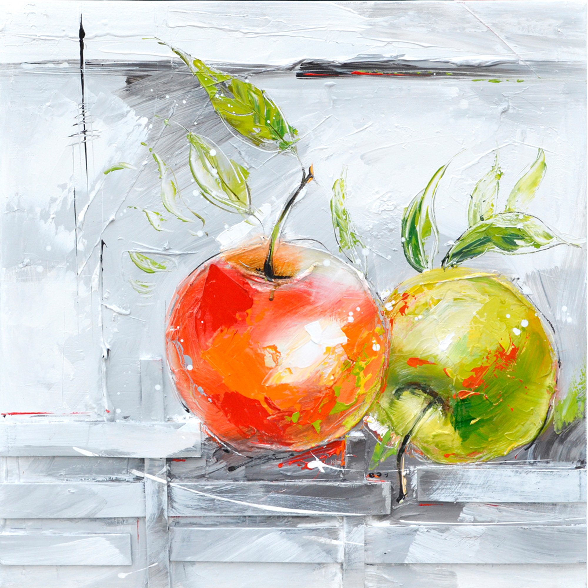 Yosemite Home Decor FCK8476-2 Fresh Apples II Hand Painted Contemporary Artwork