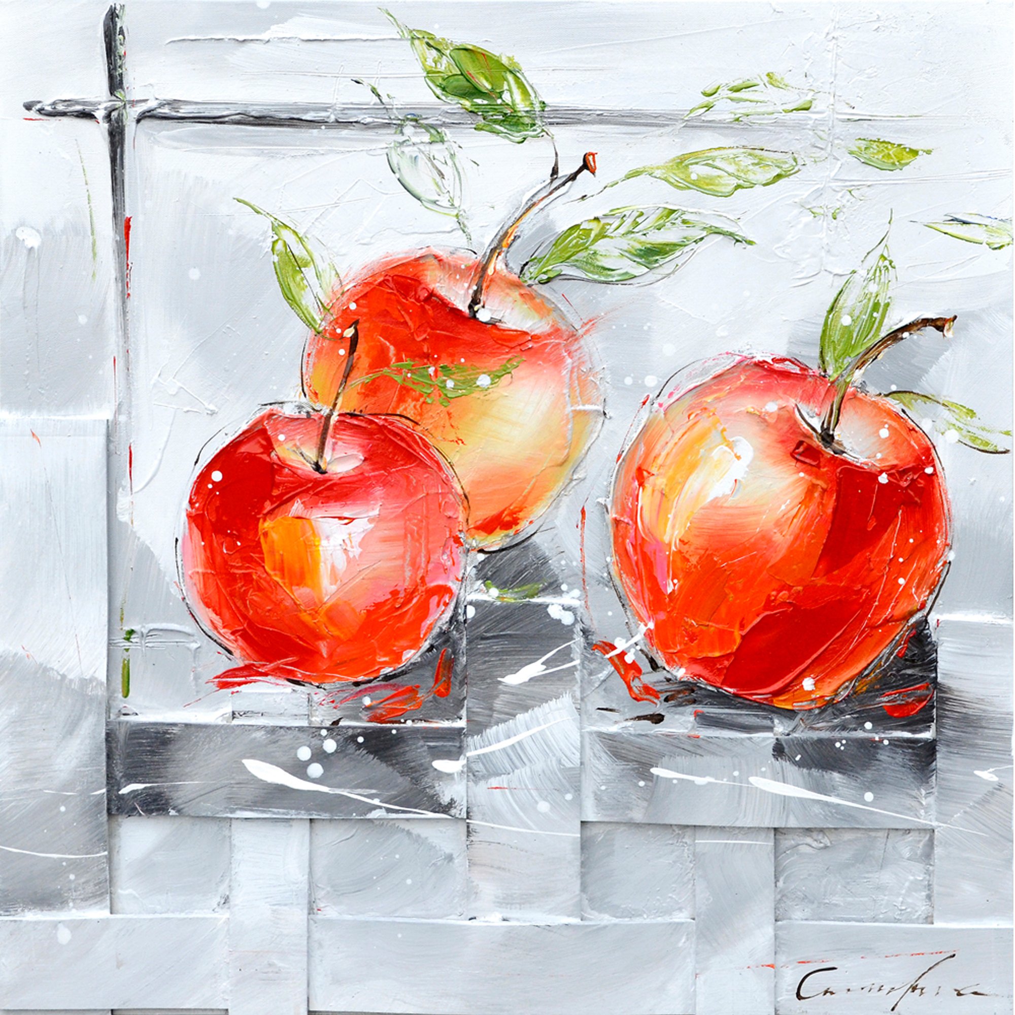 Yosemite Home Decor FCK8476-1 Fresh Apples I Hand Painted Contemporary Artwork