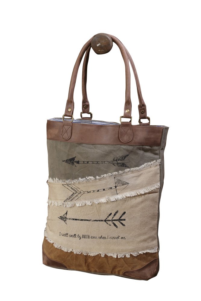 Your Heart's Delight 15" x 16" x 5" Leather Accents Arrows Classic Vintage Canvas Handbag