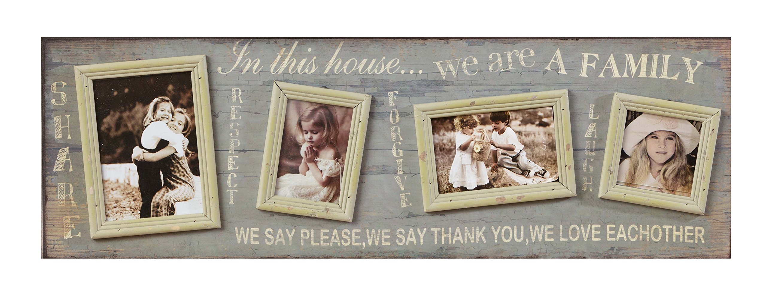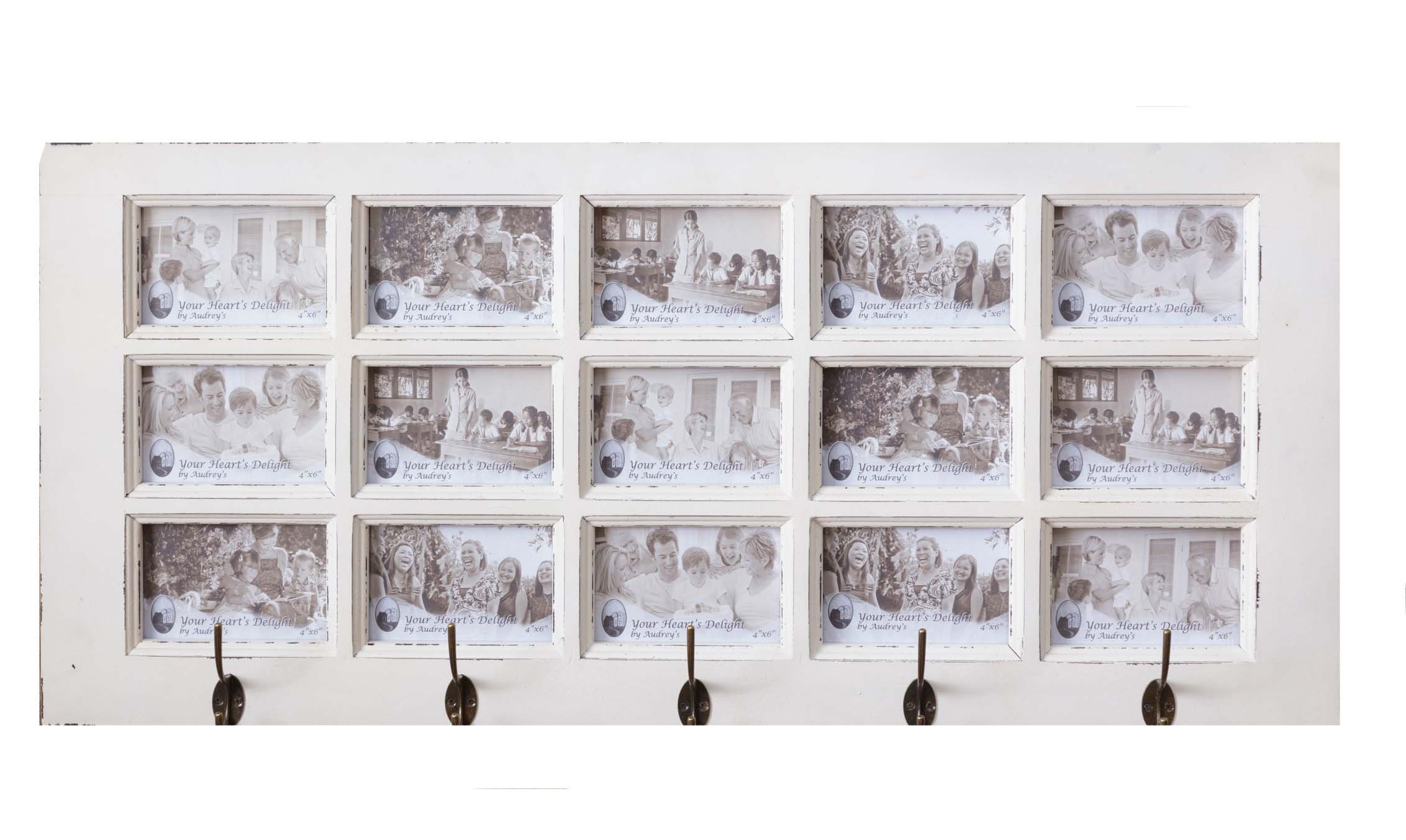 Your Heart's Delight 37" x 17.5" x 3" White Multi Photo Frames with Five Metal Hooks